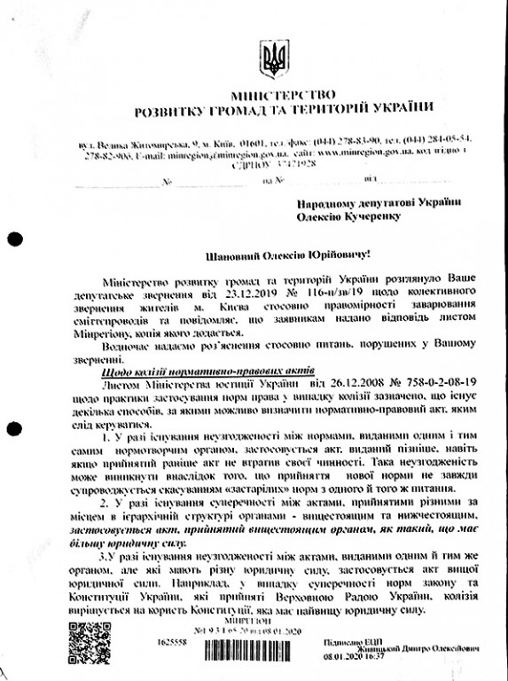 Крім цього, слід звернути увагу на відповідь Мінрегіону № 8/9.3.1/57-20 від 03.01.2020, у якій чітко зазначено, що Закон № 417: