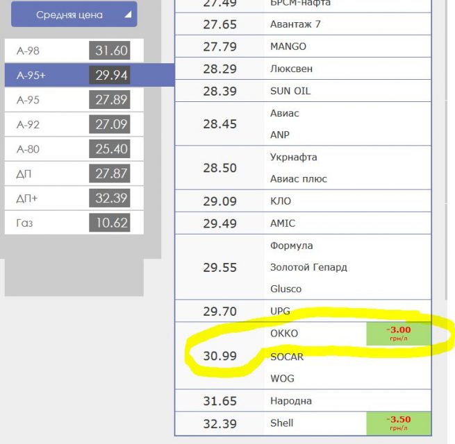 Тендерні ціни постачальників приблизно відповідають цінам на АЗС, однак вони не враховують знижок, які отримують звичайні роздрібні покупці. Наприклад, “по стеллі” ціна бензину А-95+ від «ОККО» становить 30,99 грн., однак з урахуванням знижки 3 гривні бензин коштує 28 грн. за літр. Тоді як на тендері «ОККО» виграло з бензином цієї марки 29,28 грн./л.